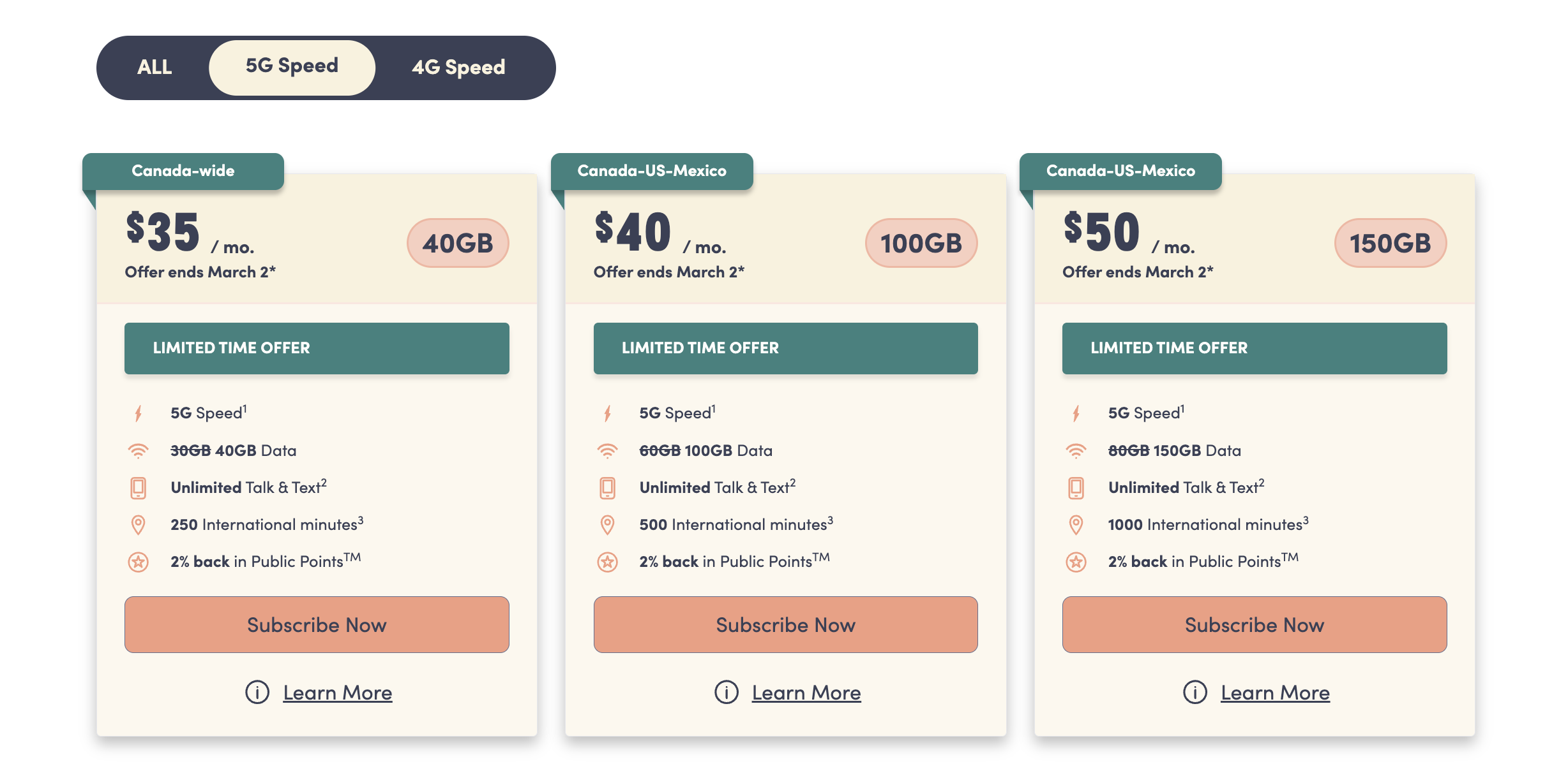 Today, Public Mobile’s changes show up as a promotional price with more data, and mention that the offer ends March 2: